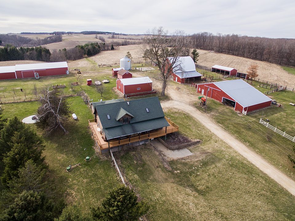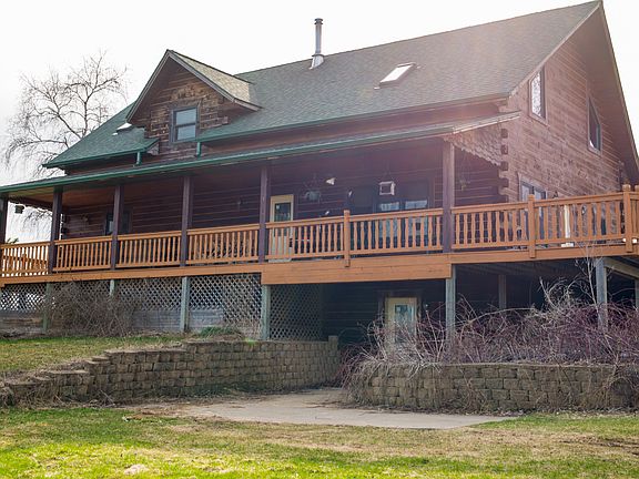 Ready to go surveyed 21.04 Acre Farm offers everything you need and want! Property is all fenced with separate pasture area and has numerous fruit trees. Beautiful full log 3+BR/4BA home boasts a vaulted open floor plan, huge master loft, finished lower level walk-out and 2 car attached garage! Enjoy main floor living, welcoming log home feel and great finishes throughout! Living room is highlighted by the vaulted ceiling with fan, windows for natural light and stand alone wood stove that supplements the heating costs. Kitchen provides ample cabinetry, breakfast bar and includes appliances. Adjoining dining has the same stylish laminate wood floors as the living room and kitchen. Main floor office and mudroom includes the washer and dryer. Find two bedrooms, a half bath and a full bath on the main floor plus a wrap-around deck with views! Upper master loft also has a full bath and can overlook the main floor. Lower level is home to the newly carpeted generously sized family room that walks out to a concrete patio; 2 non-conforming bedrooms - no closets; and the 3/4 bath. Outbuildings include a 30x48 heated shop with cement floor; new 81x40 shed with asphalt floor plus 27x40 3 sided extension with doors; barn with newer steel roof and fresh paint; 40x60 old shed w/lean too and cement floor; 20x48 loafing barn; 20x16 3 sided shed for animals; whole cobb corn crib; granary; 6,000 bushel grain bin w/dryer (4yrs old); and a play house sided to look like a log cabin!