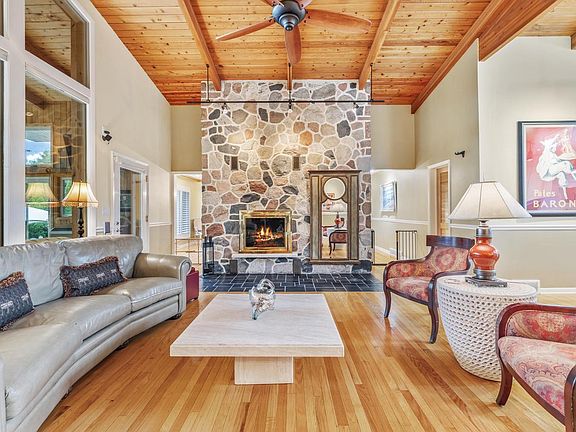 In a coveted location, this home is one house from Geneva Lake and steps from the Sunset Hills lakefront park, beach and piers. The living room features a massive stone fireplace and rich hardwood floors and ceiling that add warmth and character. The living room flows to the elegant kitchen, dining room and the vaulted four season room with walls of windows and sliding doors opening to the luxurious pool and patio. Just beyond the kitchen, a panoramic sunroom offers a full view of the serene backyard and sky. The lower level with new flooring in the family room and kitchen features a fireplace plus two more bedrooms and a full bath. This home has been meticulously maintained by one owner for thirty years with thoughtful renovations and additions making it the ultimate lake house retreat.