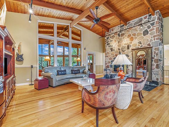 Sunset hills lakefront parkMassive stone fireplaceBeach and piersFamily roomVaulted four season roomElegant kitchenDining room