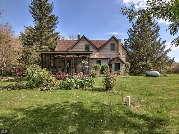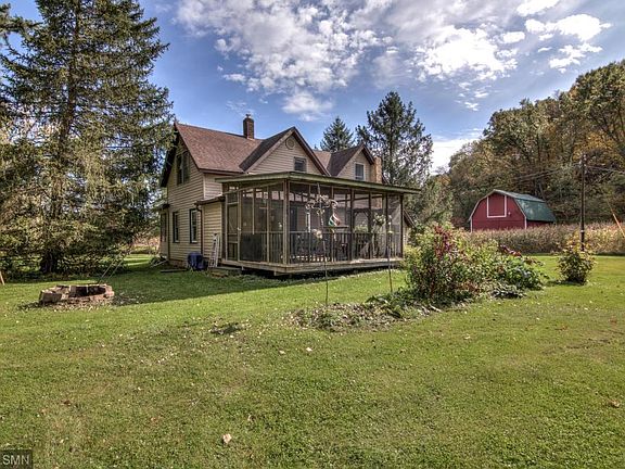 Own your own piece of paradise! This charming 3 bed 2 bath home sits on 20 beautiful acres, just 4 miles from the Mississippi River. Watch wildlife from either your screened in front porch or your 17x14 screened in back porch facing the woods. Rush River less than 1/2 mile for fishing & swimming! Floors updated in kitchen & entry way in 2018, kitchen counter tops as well. Full bath on main level and upstairs! 3 out buildings, can park up to 2 cars in them. Would make a great home or investment.
