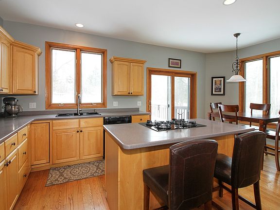 Spectacular views abound!!! Open floor plan-2 story 3/4 bed, 3 full bath home situated on over wooded half acre on prestigious Elgin Club road. Be awed upon entry-2 story great room w/fireplace and hardwood flooring extends throughout kitchen w/maple cabinets, built-in china cabinet, wine rack and pantry. Meals can be prepared on island w/cooktop and built-in oven and enjoyed at table area or in elegant formal dining room with cherry inlay in wood floor. Master suite w/sep whirlpool tub from shower area, dbl vanities private from add'l 2 bedrooms and another full bath. All on main level along with laundry room. Upper level loft w/dramatic overlook to great room-use as office or den. All this and yet a walkout level with 8+ foot ceiling-entertain with bar area, rec room and family room. Another room easily to be 4th bed. All beautifully landscaped with 3 decks-one w/hot tub. Location near 50 for convenience but far enough for quiet. Near to downtown LG; Woods School Dist.