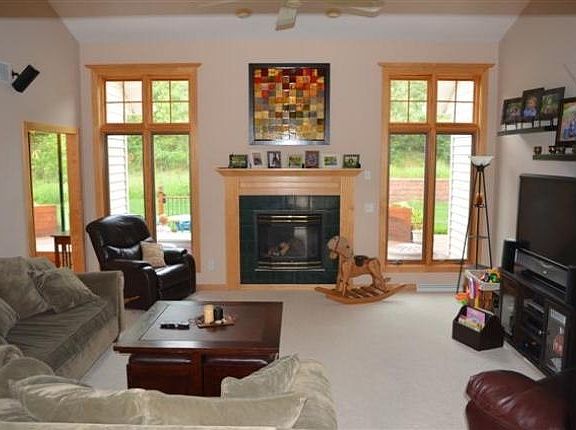 This beautiful 3 bedroom home boasts incredible views front and back. Large living room with cathedral ceilings, maple floors/woodwork, gas fireplace. Beautiful backyard with in-ground sprinkler system, and a four car garage. Attractive landscaping and retaining walls make this a gorgeous spot to relax.Large deck wraps around back of the house with hot tub and direct access to master bedroom. Located close to public boat landing, beach, restaurants. UHP incl.