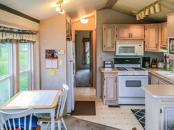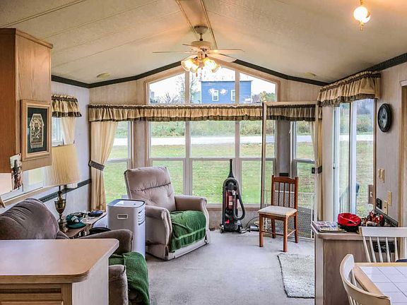Simplified living and priced to sell! Enjoy the serenity of country and nature in this affordable 1 bedroom mobile home on .7 acre corner parcel. Living room has wall of windows for lots of natural light and vaulted ceilings. Kitchen includes appliances. Bedroom has access door to the main bath with skylight. Newer 3 stall garage (30x50) garage/pole building with workshop featuring separate 200 amp service, insulated and has modine heater. Drive through driveway. Private well and mound system. Newer double hung windows. Kewaunee School District.