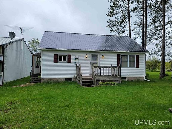 Looking for a home that is centrally located between Escanaba and Marquette? Well look no further! Well maintained 2 bedroom home with beautiful hardwood floors, open concept and full basement. Home sites on approx. 1.84 acres with towering pines. Detached 32 x 40 garage with covered porch area, plenty of room for your toys. Also inside the garage is a 13 x 13 finished and heated room that could be used for company or home office. Also on the property is a storage shed and 23 x 12 carport along with an approx. 3500 sq. foot historical Kiva Schoolhouse that previously was used as an Antique Shop. The schoolhouse offers a ton of space for storage or a business or whatever you can think of.