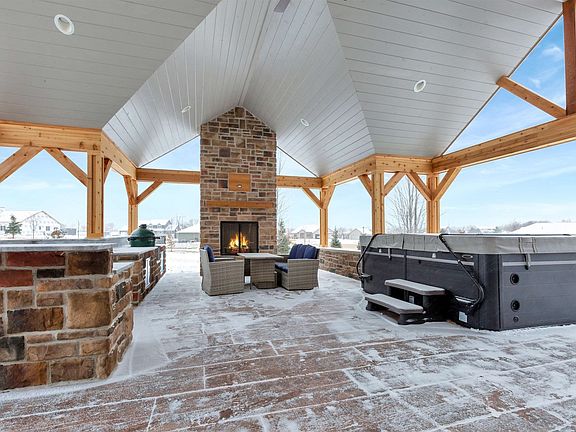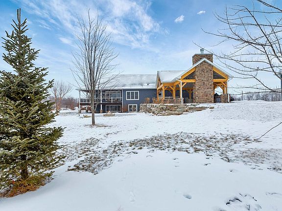 Remarkable custom built stunning home with equal parts rustic charm and grandeur! No detail was spared. 4 beds, 4.5 baths, 2 luxurious master suites with huge custom tile showers, heated floors, and custom closets, 2 laundry rooms, stunning custom kitchen w Cambria Quartz counters, incredible bar in LL w/custom cabinets, brick feature wall and granite counters, Solid Knotty Alder wood 2 panel interior doors, coffered ceiling in great room, home office, stone feature wall, wrap around trex deck w/ access from Master and office, enormous covered Patio with outdoor bar w granite, Stone wood burning fireplace, cedar beams, large stamped concrete patio w/ firepit, 1200 sf heated outbuilding, oversized heated attached garage, theatre, exercise room, and many more gorgeous details throughout!