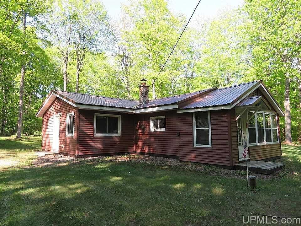 Located on a private drive with approx. 20 acres. Cabin has many updates. This would be a great location for hunting and snowmobiling. Heated detached pole barn.