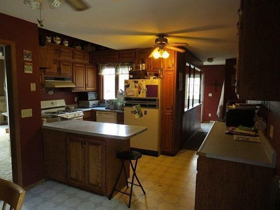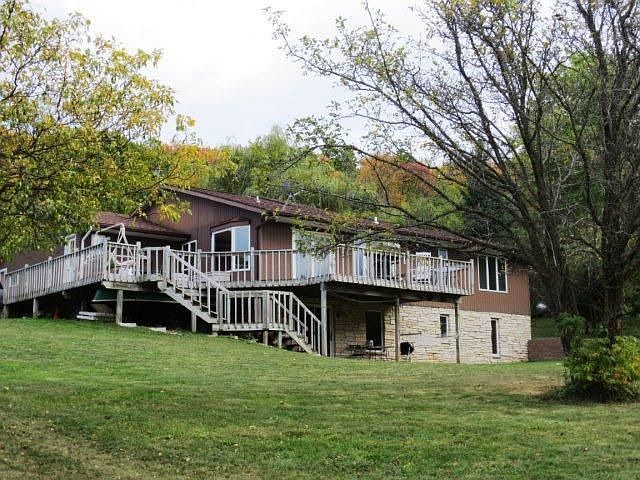 Nestled into the wooded hills of southern Rubicon is this nice contemporary ranch with beautiful views of the country side. Steel & Lannon stone exterior. Spacious great room with patio doors to a large deck. Country kitchen has ample cabinets and a dinette area. Main floor laundry. The lower level features a second kitchen, family room, bedroom & bath and is perfect for families requiring separate living space. Newer roof. Some flooring updates are necessary, but no other major renovation projects needed.