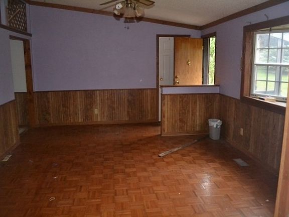 Rural setting and with Evergreen trees so thick you can barely see the road. Great lot! 2 car garage is detached, in good condition, with several smaller storage sheds. Property has been vacant and has weatherized for a year. Ownership just transferred to the Bank. With nearby neighbors and houses in much better condition, this property is a great candidate for fixing up. Handyman special or house flipper deal. Needs love!