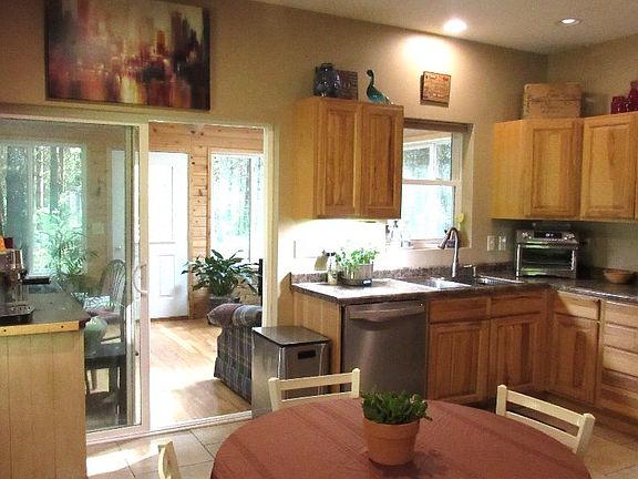 Enter this home from the front door or garage with no steps. 3 plentiful bedrooms and 2 full baths in the 2005 stick built home. Master bath has dual entry. Welcoming entry hall gives a view from the entry door through to the living room, with storage closets along one wall. Kitchen (including the appliances) is open to the dining and living room. You will be able to converse and prepare when you're hosting friends and family. Upper level bedroom 1 boasts a walk in closet. Upper level bedroom 2 is L shaped with sleeping area and dressing/closet area. Comfortable radiant in-floor heat and pellet stove is sure to keep you comfortable from toes to nose. Deep 2 car garage has room for the vehicles and workshop/toy storage. Enjoy 4.69 acres with trails throughout, including, a cleared area for gardens and campfires. Only minutes from Merrill, the travel to Wausau, Tomahawk, or Rhinelander is accessible along State Rd 17, Hwy 51/39, and County Rd K. Skylites in the sunroom. Seller is relative of this Wisconsin Licensee.
