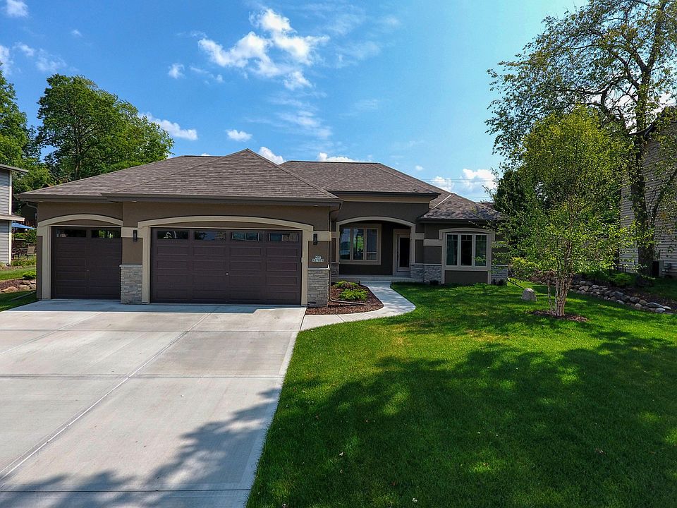Rare opportunity! New construction WITH.... professional landscaping, concrete drive stainless appliances & MORE!!! Wake up to soaring ceilings & grand windows for gazing at lake with views. A voluminous open concept layout made for entertaining. The patio door will soon lead you to a floating deck under construction for additional entertaining outdoors. The divine master suite presents trey ceilings, massive windows & a 6'x10' closet off the ensuite bath. The lower level of the home has an egress window and is ready for your personal touches for additional living space needs. Large laundry room is located on the main level too. Park your boat in the 3rd car garage with 12' ceilings. Masterful design with modern Luxury. ..Welcome Home!