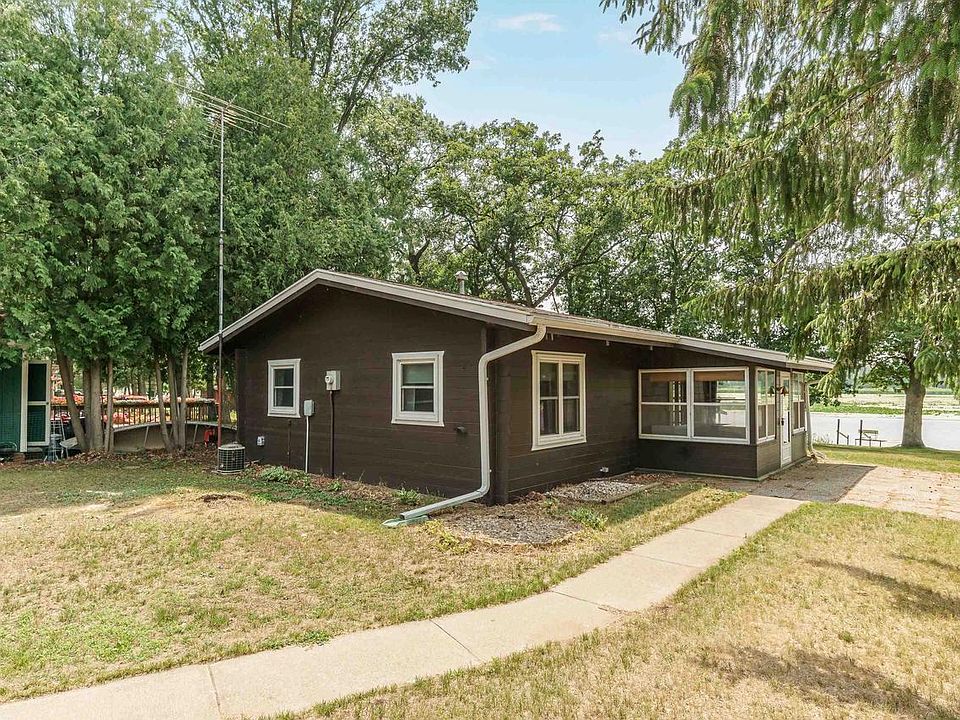 Escape to the serene Buffalo Shores Estates on Buffalo Lake! This cottage presents a picturesque retreat with breathtaking views. Boasting a single-story ranch design, 2 bedrooms & 1 bath, and a 2-car detached garage, this home is a true gem. With an open floor plan, you'll relish the seamless flow between the living, dining, and kitchen areas. Natural light fills the space, creating a warm and inviting atmosphere. Unwind on the charming patio or utilize the storage building for convenient organization. Recent upgrades, including a newer furnace/AC, new windows, and a new roof. The property includes an additional .25-acre lot across the street. Don't miss this opportunity for a tranquil lakefront lifestyle in Buffalo Shores Estates.