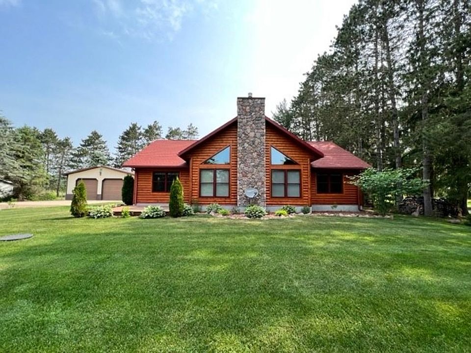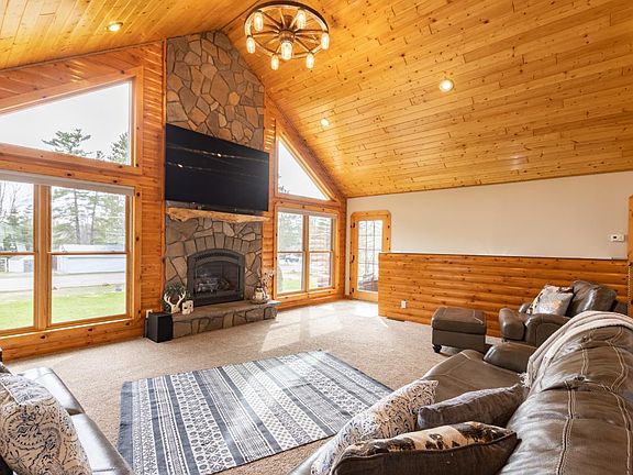 Welcome to this Alluring Country Home! This log sided home has 5 beds and 3 ½ baths. Stunning, open concept main level offers a great room w/stone, gas fireplace & cathedral ceiling. Spacious dining & Gourmet kitchen has Hickory cabinetry, stainless steel appliances, snack/breakfast counter space & walk-in pantry. Main floor laundry offers a ½ bathroom. Owner’s suite has walk in closet & bath features tile shower, luxury vanity & granite counter. Two more bedrooms on the main level & full main floor bathroom. Newly finished rec room area & family room has counter bar with 2 bar refrigerators. A 3rd bathroom in the lower level offers granite vanity & marble shower with glass doors. Lower level has 2 bedrooms with lovely white barn sliding closet doors. There is a great space that views the backyard covered patio deck area, hot tub and firepit. Conventional septic system is a 3 bedroom system.