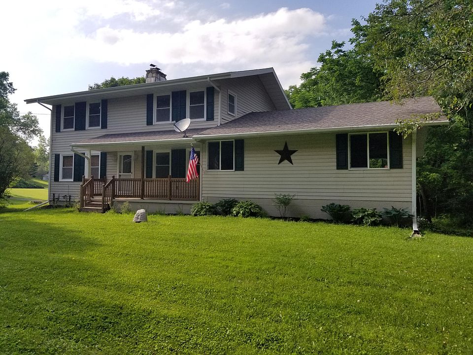 Check out the Virtual Tour before showing. This home has the room and the land you are looking for, the country feel yet close to all shopping. Open concept, kitchen, dinning room and living room. 24 x 34 4 season w/ pellet stove and 4 season windows. Full bath on main and upper levels. Master bedroom is large enough to add master bath. Most rooms have a fresh coat of paint. Vinyl windows. Stream runs adjacent to the property. Buyers and agents to verify all measurements.