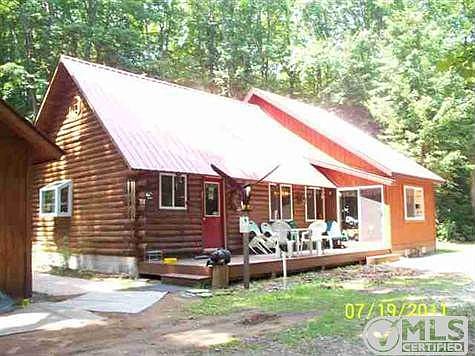 Very well built 2-3 bedroom cottage situated on wooded 3.7 acre site - wildlife galore in your back yard, access to 3 lakes, pump house building, detached oversize 2 car garage with guest sleeping quarters in upper level. Main structure built in 1994-95 is cedar D log with cathedral ceiling and stairway to 2 upper level (non conforming) bedrooms, 2 LP fireplaces, kitchen with loads of cabin and wood plank flooring; addition built in 2003 has LR and 1st floor bedroom (one of the upper level bedrooms was added with addition). Home is immaculate and purchase price will include all appliances, owner owned LP tank; plus most of the furnishings are also available for purchase. Brokered And Advertised By: BIG C REALTY-M Listing Agent: JOANN CARLSON