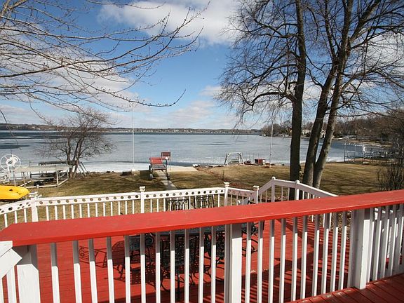 This home is made for entertaining! Renovated lake home provides sweeping lake views from your 2 tiered deck, or watch sunsets from the large pier that was recently built. New seawall and landscaping. Open floorplan with lake views from every room of the house. Renovated kitchen with newer appliances. Large dining room and live-edge wood bar for added seating. Living room with natural fireplace for winter evenings. Lake side family room where you can curl up and watch the lake activity. 3 bedrooms upstairs and renovated bath. Additional renovated bath on 1st floor. Newer metal roof, cement board siding, windows, furnace, ac, iron curtain and new draintile & sump pump. Door to the lake from the basement for easy access. Storage under deck for lake toys. WOW
