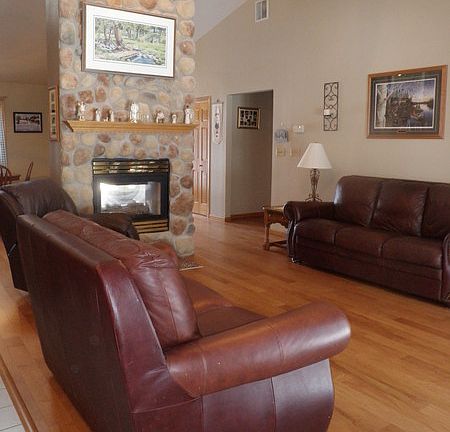Custom built ranch is loaded with trees, perenials, and a large pond; all on 2.5 private acres. * The master bedroom has a trey ceiling and walk-in closet; the master bath has 2 sinks, a separate shower, and whirlpool tub. * The great room is an open concept area with huge vaulted ceilings a two-way gas fireplace, nice size kitchen, and separate dining area. * The relaxing pine finished four season sunroom leads to a large patio and fenced-in backyard. * There is loads of storage throughout the home, as well as a mudroom with a laundry area. * There is a Bonus Room upstairs with a completed family room as well as a den area, or possible fourth bedroom. * There is new wood flooring in the entry, dining, and great room; new backsplash tile in the kitchen, new tile flooring in the master bath. Kohler * Included in the sale are : Appliances, washer, dryer, new water softener, child's playset, window treatments, 2 sheds, and windmill. Also, a brand new roof will be installed this spring! **Additional Pics are available at the forsalebyowner.com website ** Septic: Mound Heat: Propane Water: Well Foundation: Slab (no basement) * Low taxes ($2,400), great school district, 1 mile to major hwy; 40 min. drive to Green Bay. *** Serious Pre-approved/cash buyers who are able to close within 90 days may contact us by phone or email to set up a private showing. (Sorry, No VA/FHA/HUD loans accepted). *** (Cash sale only; this home is NOT for rent, lease, or land contract). Additional property info: http://www.forsalebyowner.com/listing/3-bed-Single-Family-home-for-sale-by-owner-N2910-Poplar-Ridge-Ln-54157/22727536?provider_id=28079