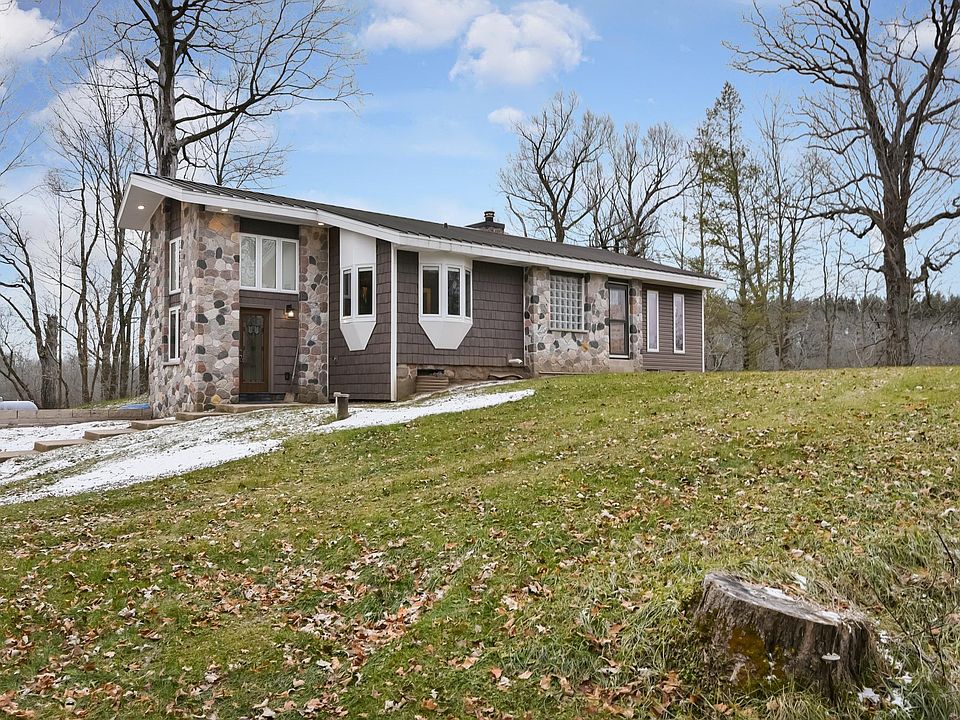 Overlooking the Rubicon River from a hill, this lovely completely updated 3 BR 2 BA contemporary style home has incredible views and a tranquil setting, teaming with wildlife and perfect for hunting, kayaking and peaceful living! Dramatic 2-story foyer features CT flooring and is open to the main level. Eat-in kitchen w/ nice views features cherry cabinets and SS appliances! DR has custom windows, amazing views and plenty of room for entertaining! Stunning natural stone F-T-C FP is a beautiful focal point in the LR! Patio door off the LR leads to a beautiful deck overlooking the river! Main level BRs have HWFs. Main BathRM has porcelain tile and jetted tub! LL has finished laundry area, office / den with built-in cabinets, 2nd BathRm w/CT Shower and 3rd BR, plus 1.5 car garage!