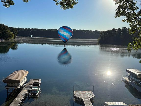 Over 100' of prime sandy frontage on the Waupaca Chain of Lakes with breath taking Sunset Lake views across two lakes. Whether you're relaxing on the updated deck, patio, or one of two private docks, this home defines lake life. Enjoy easy access to the water with kayak storage, lakeside shed, and a new hill side tram system perfect for transporting guests, gear, or coolers. Inside, you'll find a fully remodeled 4-bedroom home with modern finishes, a double-sided fireplace, and gas stove in the walkout lower level. Ideal for hosting guests or large families. The 3-car garage includes a heated/cooled workshop. Nestled on a quiet dead-end road just minutes from town, this lake front gem is a must-see.