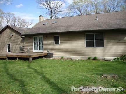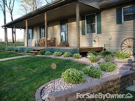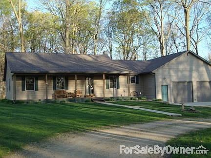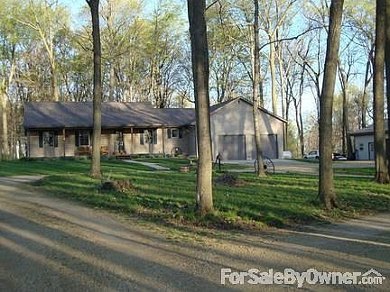 Welcome to the woods!  Enjoy 5 peaceful, private acres in your 3 BR, 2 BA cozy ranch home. Clean and well maintained.Features open floor plan with custom wood flooring in the great room and the rustic charm of the knotty pine cathedral ceiling with skylights. The wood burning fire-place gives a warm homey feel on those cold winter evenings. Beautiful hickory kitchen cabinets with plenty of space. Main floor laundry.Full basement is partially finished and plumbed for in-floor radiant heat. Water softener included.Over-size 2 car attached garage with storage above.Plenty of room for hobbies with a 34x64 insulated, cemented workshop/storage building with electric and water.Watch the birds as you enjoy your morning coffee on your large front porch!Property sold AS IS.  MOTIVATED SELLER!Additional property info: http://www.forsalebyowner.com/listing/OPVMS?provider_id=28079