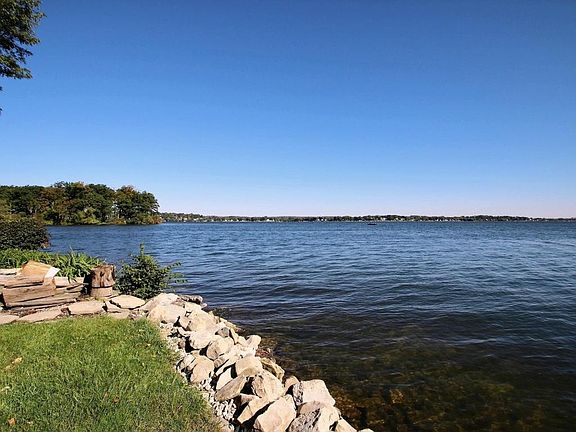 Pewaukee Lake Frontage home with Big Lake views of Downtown Pewaukee offering 55' of excellent swimming and fishing frontage. 2 bedroom 1 bath Cape with garage & boat house. Boat house has working track and dolly system with motorized winch-NEW siding for boathouse will be installed! Enjoy views of the lake from most rooms. Recent survey shows elevations are above the flood plain level. Master bedroom with lake views + hardwood floors. Peninsula Drive is a quiet no-thru street, great for walking and biking. Newer well. Flat front yard makes it easy access to your frontage. Pewaukee Schools.