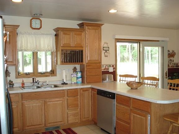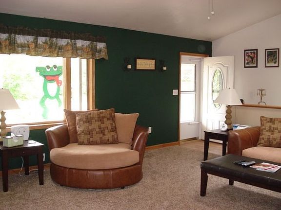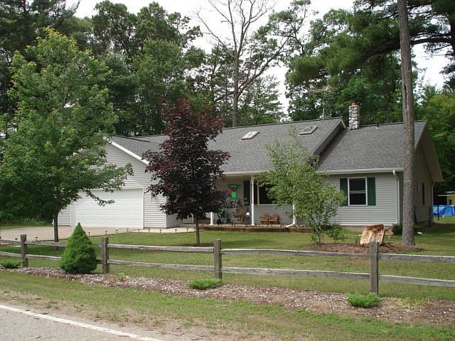 Spacious ranch on 2 acres features 4 bedrooms, 2 full baths, 2+ stall attached insulated and heated garage, also includes an extra 20' x 20' storage garage and 30' x 60' pole shed, vaulted ceiling living room, skylight, kitchen snack counter, 1st floor laundry, finished lower level family room and bedroom. This is a must see!