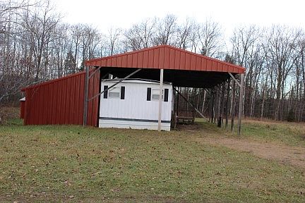 L-9005: 47 acres of mostly wooded hunting land east of Antigo, includes a 14x 70 fully furnished trailer placed under a 30 by 70 pole barn roof. Parking underneath pole barn roof. Electricity, propane, heating, and perk test/surveyed. Property has five acres of agricultural land, balance mostly hardwoods (oak, maple cherry), very little swamp land. Property holds dear, bear and high amounts of rough grouse and turkeys. Property includes 3 elevated and enclosed deer stands, 2 established food plots, 4-wheeler and hiking trails throughout. Road frontage is screened with mature pine trees, very private. $110,000.00 Address: N3024 Hagman Road City: Elton, WI School District: White Lake Township: Evergreen County: Langlade Acres: 45.4 Taxes: $793.07 Tax Parcel # 0100464