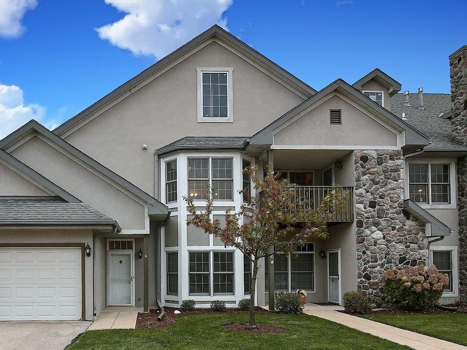 Spacious Pewaukee upper condo now available! Convenient location, priced to move! Open concept layout featuring cathedral ceiling & new flooring. LR has gas fireplace & walkout balcony. Kit features large pantry, good counter & cabinet space, & breakfast bar w/ stools. Large BR's w/ private baths. MBR suite w/ walk-in closet & soaking tub. Huge bonus room can be family rm, den/office or 3rd BR. Unit has tons of storage, private entrance, in-unit laundry, newer furnace & hot water heater. 2+ car garage w/ nice shelving. Dogs & cats allowed w/ some restrictions. Furnishings negotiable. Hurry!