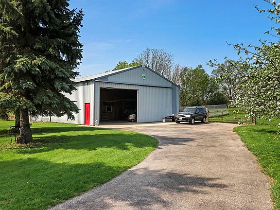 The perfect combination of country charm on a 4.47 acre fully fenced farm w/ victorian farmhouse, 54' X 40' pole barn, pastoral views, 3 car garage, high speed internet, natural gas and great location on the edge of Darien w/ easy access to I43 & Hwy 14. You will love lazy summer days on the huge porch that stretches across the front of the house, entertaining in the formal dining room and front room w/ pine floors, cooking meals for holidays in the huge kitchen w/ cathedral ceilings and overlook loft, relaxing in the big sunroom w/ vaulted, ship lapped ceiling and walls of windows or throwing an impromptu cookout on the deck. All of the rooms are oversized. The 3 Car garage w/ goat/poultry barn & pole barn w/ electric, water and 3 stalls are ready to make your farm dreams come true!