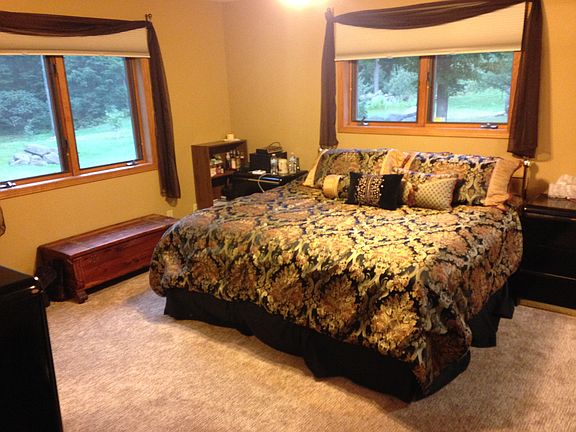 EXTREMELY RARE FIND A slice of Heaven located on 10 acres just 3 miles East of the City of Antigo, WI. Built in a very modern, quiet and safe rural neighborhood on a DEAD END road. This 10 acre property is abundant with wildlife including bear, deer, fox, ruffed grouse, turkey and misc birds. There are 2 high ridges that reach up to approximately 1730 feet elevation. You can see for several miles to Antigo and beyond from atop these Glacier formed hills. The view is simply breathtaking. Trees are oaks, maples and 1200 recently planted conifers to enhance the sanctuary effect to attract and hold wildlife. The property has 2 food plots, 2 water holes, 37 apple trees (most mature and producing high quality apples) and a 9x7 elevated permanent hunting/viewing shack constructed upon telephone poles atop the highest ridge. Neatly groomed trails are perfect for many activities including walking, snowshoeing etc... THIS PROPERTY IS SURROUNDED BY THOUSANDS OF ACRES OF PRIVATE PROPERTY/TIMBER/ROLLING HILLS. It has a cement driveway approach and the front is adorned by a beautiful 80' double retaining wall. Glacier formed boulders are abundant throughout. The interior features newly painted walls, new toilets, new carpet, and new Coretec Flooring XL throughout and many other updates. TURN KEY - LIKE NEW. SIMPLY PUT, YOU WILL NOT FIND A BETTER PLACE TO RESIDE.