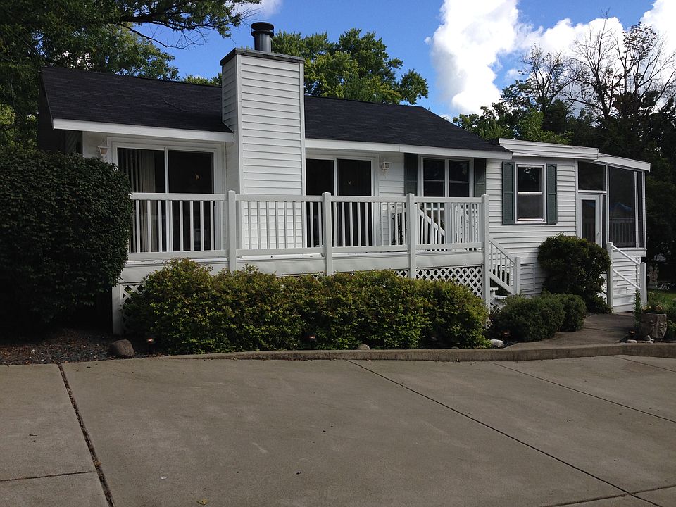 Cute and cozy year round cottage offers 2 bedrooms and 1 bath. Features include a beautiful stone gas fireplace which can easily be converted to wood burning, maintenance free deck that overlooks the manicured lawn which is partially fenced in, large screened in porch off the back to enjoy the summer breeze without the bugs and a massive 4.5 car garage to protect all your toys. All this, is just 2 blocks from the Lake. Lake access/rights include a clubhouse, boat launch, beach and a park with picnic areas.