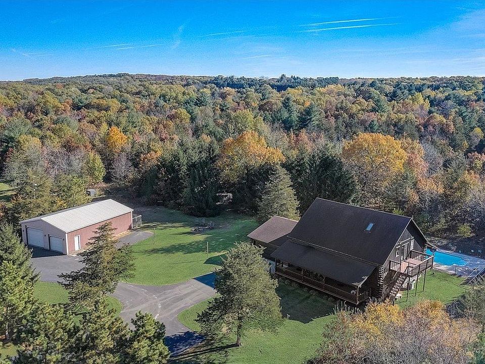 Are you searching for the Lake Wi Area w/ private setting, wildlife & a wooded lot? How about a 30x45 insulated outbuilding w/9' & 7' tall overhead doors for toy storage or a serene and relaxing heated salt water pool? Gorgeous custom built full log home w/4 bedrooms & 2 full baths is waiting for you! Complete w/ updated kitchen w/smudge proof slate stainless appliances, vaulted ceilings, custom bath w/ built in make-up counter, walk in natural stone shower w/ oil rubbed bronze fixtures, sun room, large rec room w/bar and egress window for entertaining, 3 decks. Close to Lake WI & only a few minutes to the Interstate for that quick commute. Included is a 1.96 acre buildable lot for extra space. Sellers currently use 2nd bedroom as primary bedroom on main level. Home warranty included.