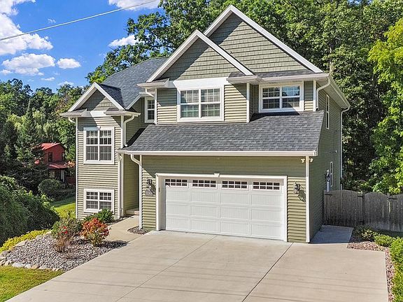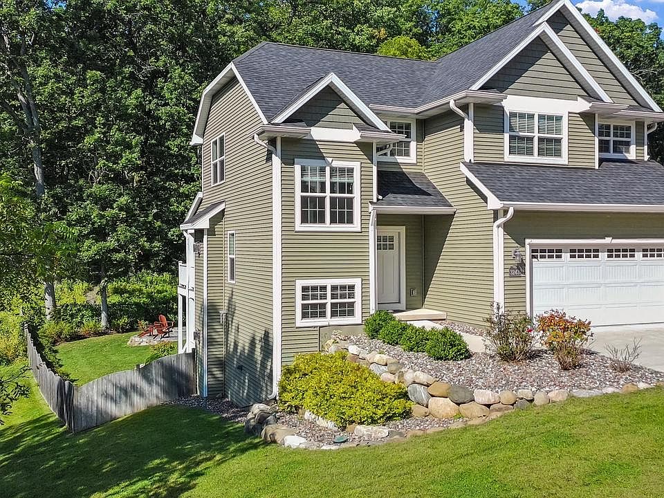 Nestled on almost 1/2-acre lot sits this beautiful fenced, secluded home built in 2020. 4 bedrooms, 3.5 baths. Beautiful kitchen with open concept living/dining, gas fireplace, luxury vinyl plank floors, walkout to the covered deck with Trex flooring and stairs leading down to another 2 patios-9x12 and a covered 10x15. Upper level has 4 bedrooms, master in-suite with double vanity, large shower and a walk-in closet. Another full bath that is shared and bedroom 4 has a walk-in closet. Lower level has a family room with fireplace two, a rec room and a full bath. A walk-out to the large yard with exterior lighting and a stone fire pit, professionally landscaped including irrigation system. Pavers on both paths and patio. Epoxy garage flooring and heated garage. 9-tvs, Offered furnished!