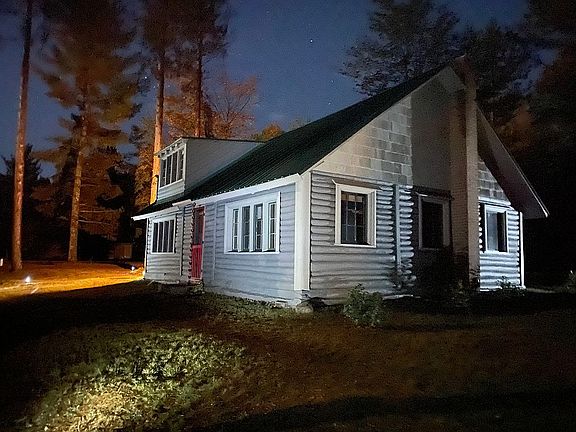 Charming log home. Newly renovated and new well in 2020. Sits on 5.7 acres and has 135 feet of prime lakefront property with sauna and pole barn.
