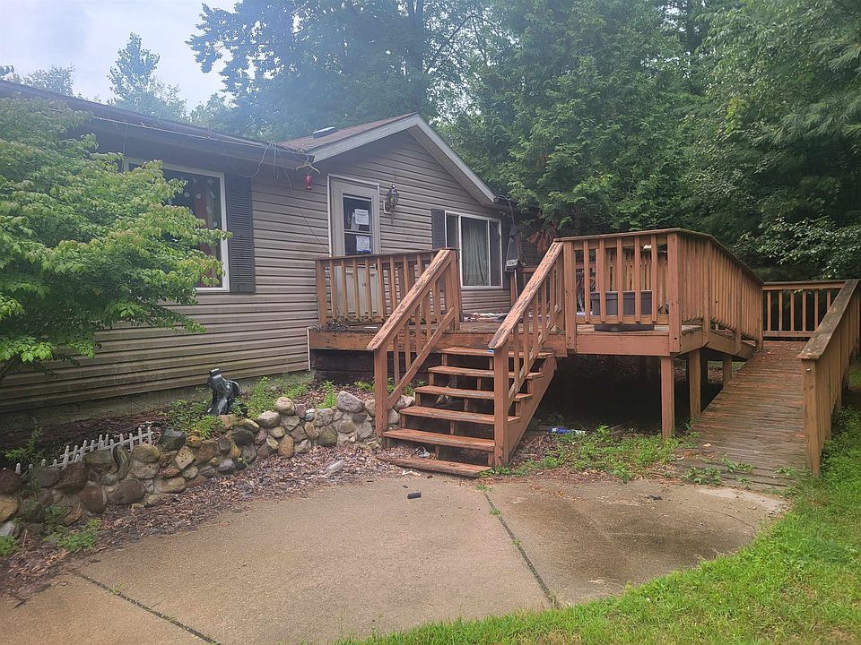This large double-wide manufactured home has a permanent poured concrete foundation with full basement. Great potential can be found here to renovate into a roomy 4 bedroom, 2 bath home-complete with separate main floor Living room and Great room that has a fireplace. Split bedroom design has primary bedroom on one end with walk-in closet and private bath and the other three bedrooms on the opposite end. First floor laundry. Deck over looks private backyard surrounded by woods. Large detached garage. Because of current condition, this home will not qualify for most lending programs. Cash offers recommended.