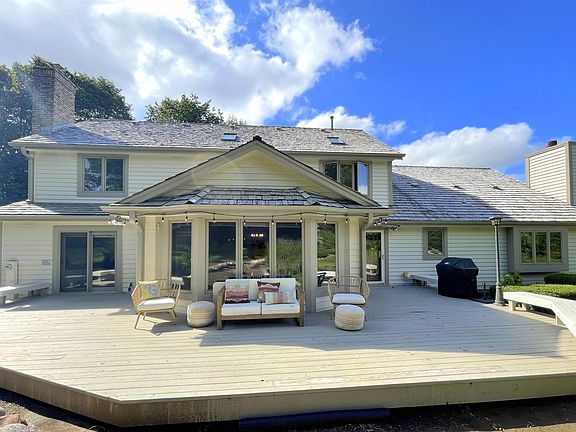 Absolutely stunning 2 story home in sought after Five Fields Subdivision adjacent to Wagner Park! Soaring open foyer w/2 story staircase. Updated 27X20 Kitchen w/ dinette & 2 patio doors to 40+ ft private deck & beautifully landscaped .7 acre yd! Gourmet Kitchen has everything you want! Granite countertops, huge center island, pantry, desk, coffee station, new appliances all open to Great rm w/fireplace. 22X16 Master en-suite lg enough for sitting area, walk-in closet, & luxurious bath w/2 sinks, soaking tub, vanity & separate shower & toilet. All this + a quiet Den w/2nd fireplace on the end of house, Formal Dining rm & set apart main flr Family rm. Home has so many vaulted ceilings, skylights & walls of windows w/natural light. 3 car garage & main flr laundry. You must see this home!