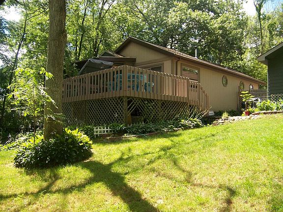 Enjoy backyard privacy with this 2 BR, 2 bath ranch home with lake rights. A warm, spacious livingroom with a pellet burning stove, galley kitchen with snack bar. MBR w/patio doors to deck. LL den/office, Full Bath with tiled walk-in shower. Relax on the screened-porch overlooking a wooded view and a beautiful landscaped pond filled with perennials. Situated on a 100 X 140 lot with a heated 2 1/2 car garage.
