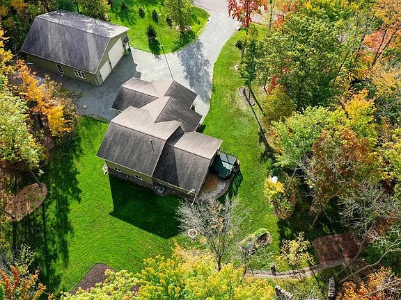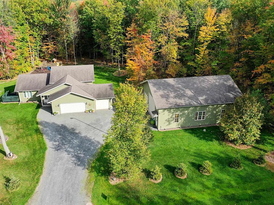 Custom stick built 4 bed, 3.5 bath home located on a dead end road with +/-4 wooded acres. Oak kitchen with island and stainless steel appliances. Dining room with patio door to deck system. Open concept living room with vaulted ceilings and backyard views. Master suite with walk in closet and 3/4 bath. Upper level full bath with laundry. Lower level with family room, bedroom #4, full bath, storage/utility room and egress look out windows. Finished & heated 3 car attached garage. 50x40 heated detached garage with knotty pine interior, 3/4 bath, office, mezzanine storage and 18? cathedral ceilings. Landscaped backyard with mature trees and trail system.,Drilled well, holding tank septic system, central air, forced air lp furnace and 200 amp. electrical service. The stove, refrigerator, dishwasher, microwave, washer, dryer, water softener and swing set are included in the sale price.