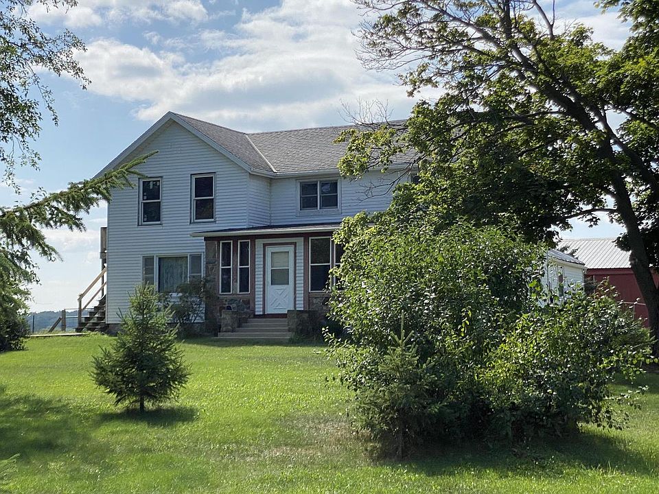 Ye Old Farmhouse awaits it's new owners! Step inside this 3 Bedroom, 2 Full Bath home and be reminded of simpler times. Large kitchen is bright and inviting with a dual sided china cabinet First Floor Laundry, Bedroom and Full bath. Upstairs room was part of a duplex years ago but could be an entertainment/study/bonus room with a little remodeling. 40X56 metal pole shed has concrete and power and ample storage for all of your needs. Also an enclosed front and back porch waiting for your finishing touches. Older barns are in need of some repair. Almost 7 acres of land where you can have chickens, cows, horses, etc... Gorgeous sunsets and surrounded by farmland. The country is calling!