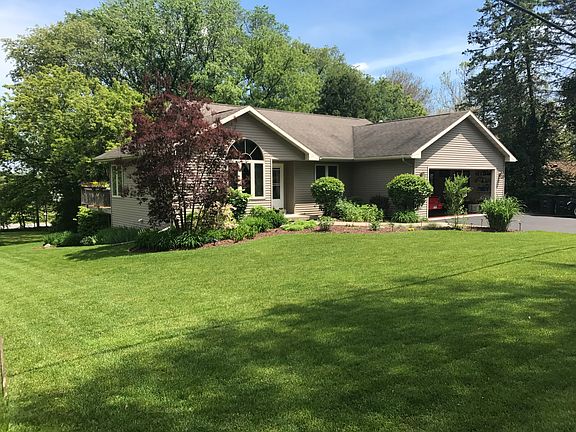 Custom ranch, w/ numerous upgrades, & immaculately maintained! Beautiful landscaped, w/deck & brick patio overlooking back yd, w/gas grill hook-up & a fire pit. Interior offers a open flr. plan, L.R. w/ vaulted ceiling & f/p, spac. kitchen w/ pantry, breakfast bar & dinette area. The master suite w/ private bath w/oversized shower, 2 addit'l Bdrms, & open staircase to the ready-to-be finished LL w/ full size windows, plenty of room for a 4th Bdrm & F.R area, plumbed for a 3rd bath. The heated garage is perfect for the hobbyist. Great location on dead-end street, close to all lake activities.