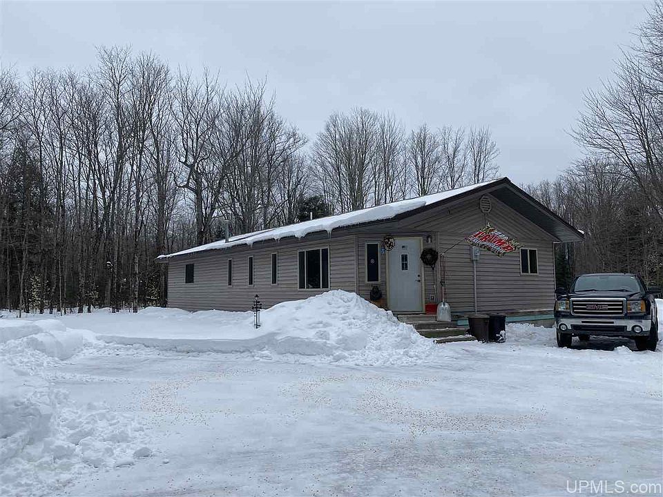 Great Opportunity! 3BR, 1BA one floor living on 2 acres with a garage just outside of Munising!! The home also comes with an additional 5 acres ( 2 approximately 2.5 acre parcels). You could live in this home and build on the other parcel or sell the other parcels. The home was built in 1997 and is very well built!! Great place to live in year round or have as a second home. Near snowmobile trails, cross-country ski trails, Hiawatha National Forest and everything Upper Michigan has to offer. Home comes furnished and is just waiting for you.