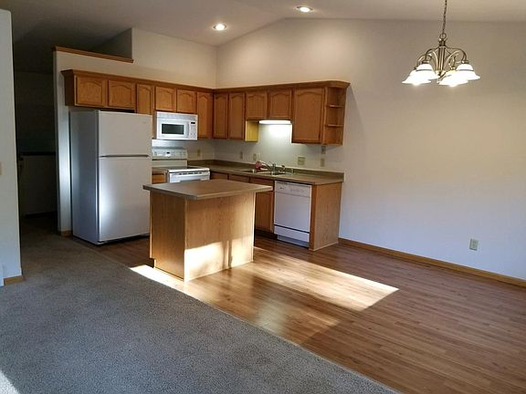 Nice townhome located in a private, wooded setting, 8 miles West of Eau Claire and 10 miles East of Menomonie in Elk Mound. This split-level duplex with 1720 square feet features TWO living rooms, large bedrooms, central air conditioning, a dishwasher, a 2-car attached garage, a deck leading to a nice extremely large yard and has washer/dryer hookups,. Pets considered. Rent includes water and sewer, and there is NO application fee. Also, the Chippewa River State Biking Trail is just 4 miles away! Large newer townhome available! Yard, private setting and 2 car attached garage! Water and sewer is well and septic so included! Washer/Dryer hookups! Gas fireplace, split level, 2 full baths!