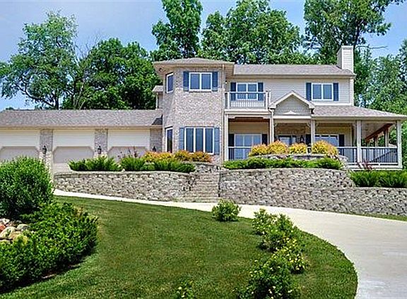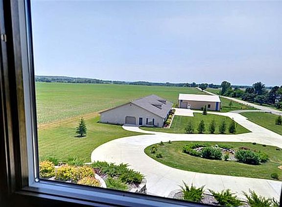 What a view & tons of storage too! Inviting Mstr Suite w/private deck, fireplace, whirlpool tub, double walkin closets. Wonderful entertaining sized kitchen/dining area; completely finished lower level with family room, bar and walkout to patio and backyard overlooking farm fields and wooded areas. Beautifully landscaped w/brick raised beds. Attached 3 car garage plus two detached buildings, one 115'x40' (approx) insulated & finished plus a 60'x45' Wick Metal Building. Enough room for all your toys.