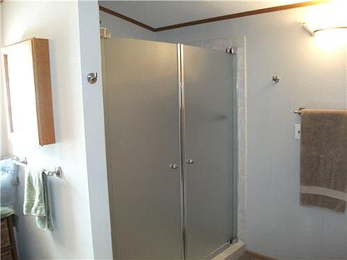 A super clean home on a large wooded lot.Living room is very spacious with a patio door to one of two decks.Kitchen has a large amount of oak cabinets with a new refrigerator,new stove and dish washer included. A seperate utility room with washer, dryer and water softener included. Home has 2 bedroomon and 1 bath on south side of house and 1 bedroom and 1 bath on north side of house. The master bathroom (completly remodeled) has a large walk in shower with a 5 X 4 double door entry and master bedroom and bath is handicap accessible. A few extras are an inside switch for heat tape, remote control for lights and fan in master bedroom and skirting under decks to keep out critters. Call jim slight @ 920-397-0054 for a showing of home. See mhwis for more details.