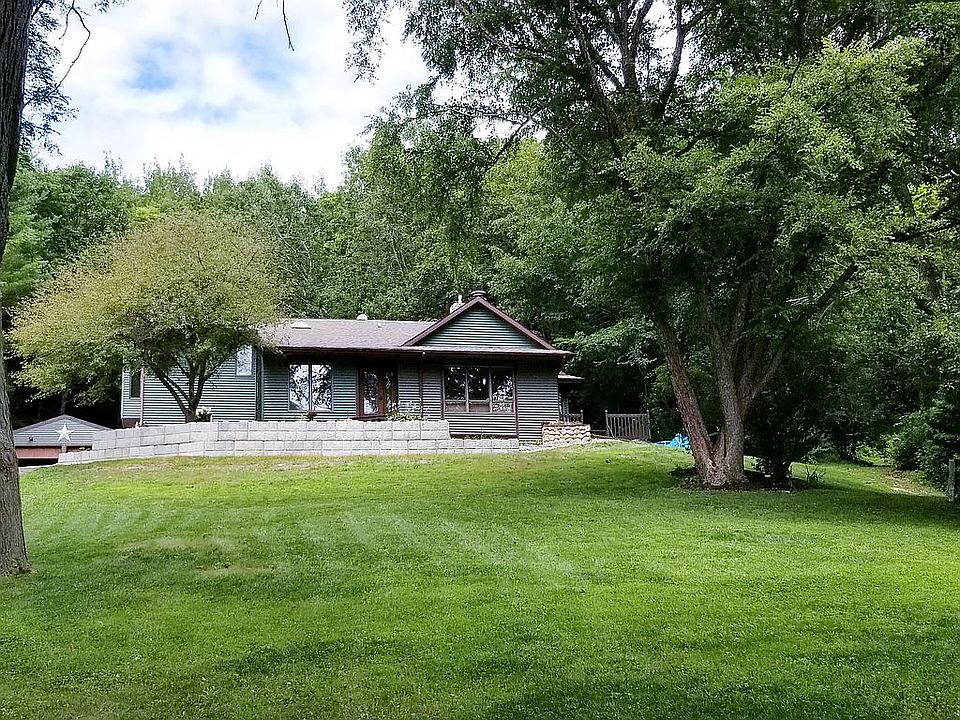 Beautiful 3 bedroom home with den, 3.5 bathrooms and over 5 acres. This turn key property has many updates including all bathrooms, two way fireplace, new driveway installed in 2019 and flooring throughout. Large master bedroom includes walk in closet, full bathroom with subway tile shower, hardwood floors and views of wooded valleys. Dining room has vaulted ceilings, many windows and skylights that make the room full of natural light. Expansive finished basement has it’s own full bath and wet bar, making it perfect for entertaining. Plenty of storage area inside and out; closets throughout the whole home, large utility room, two car garage attached, two car detached garage as well as a storage shed. This south facing 5 acre property is mostly wooded with a trail created to the top of a ridge. There are multiple deer runs throughout the property; current owners have harvested both deer and turkey in their own backyard. Appliances included: washer, dryer, stainless kitchen appliances: double oven, microwave, dishwasher and refrigerator – most appliances are less than three years old.