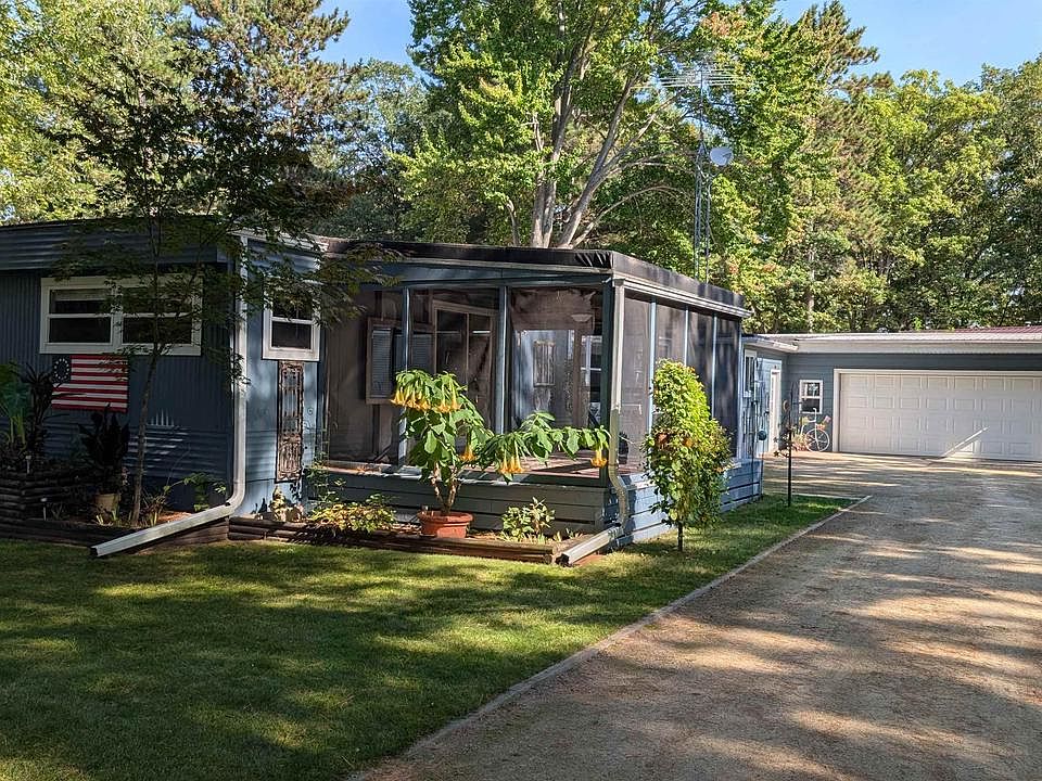 Single Wide Mobile home located in Puckaway Shores Manufactured Community. This one goes above and beyond! Located on an oversized park like setting lot, you will find this 3 bedroom 1 bath mobile home. Newer appliances, flooring, and windows. 24x40 heated garage can fit 4 cars, large workbench and plenty of storage. Screen porch with winter removable covers, Koi pond with sitting area and gazebo to enjoy your outdoor space. Wood burning stove in living room to make it cozy in the winter. 2 outdoor sheds and plenty of landscaping already done for you. Access to Lake Puckaway. Lot rent is $297 a month and buyer must be approved by park owner.