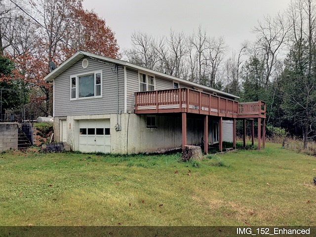 Country home surrounded by trees. Less than an acre lot with pond. Gorgeous views and tons of wildlife. 3 bed 1 bath home offers an open kitchen & dining space. Over-sized living room. Unfinished basement w/a working shower stall give many possibilities. Huge deck overlooks the pond. 1 car garage. Some updates needed, but potential is unlimited.