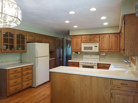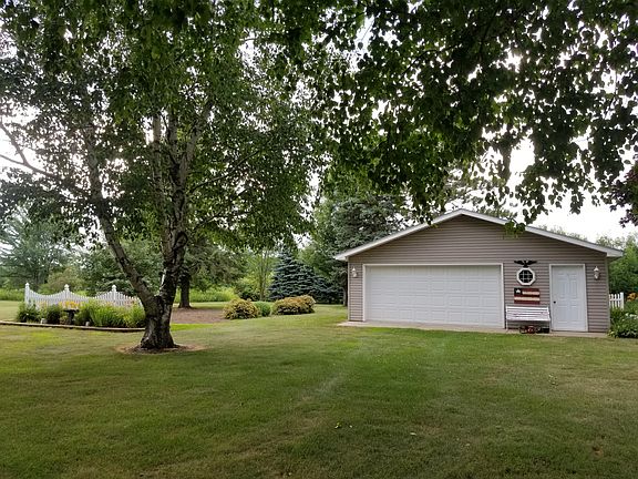 One owner three bedroom ranch on 1.05 acre lovely park like country setting with mature shade trees, perennial flowers, large garden and several fruit trees. Enjoy the extra detached 28x32 garage with workshop, and the partially finished basement with family room, rec area, shelving and workshop. Hardwood floors in kitchen/dining, spacious rooms with lots of closets and built in storage space. Third bedroom is laundry ready. All kitchen appliances included, also washer/dryer, and extra refrigerator in attached garage. This is adjacent to the elementary school field and a great place to raise a family.
