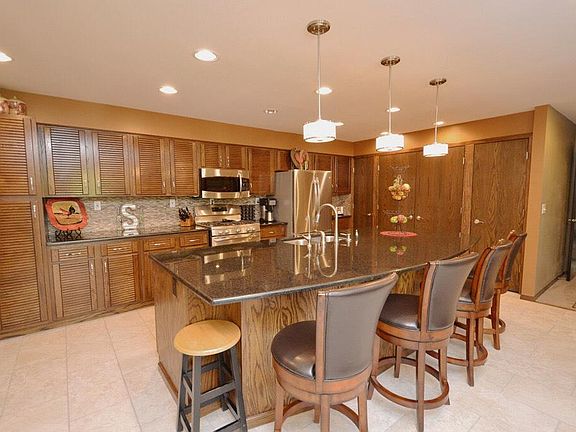 Beautifully wooded hillside ranch home surrounded by nature on approx an acre.This unique custom home offers an open concept w/ much natural light. Remodeled and updated kitchen and baths,ss appliances & main floor laundry. All bedrooms offer patio doors onto a wrap around deck which overlooks the beautifully landscaped parcel. Master suite with private bath & 1 walk-in & 1 reg. closet. Trails to 2 ponds, 1 stocked for fishing! Lots of updates, flooring, lighting,fp doors, garage doors,fresh paint inside/out,newer furnace,a/c,ro system,water softener,disposal,all new prof landscaping.