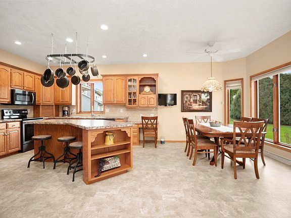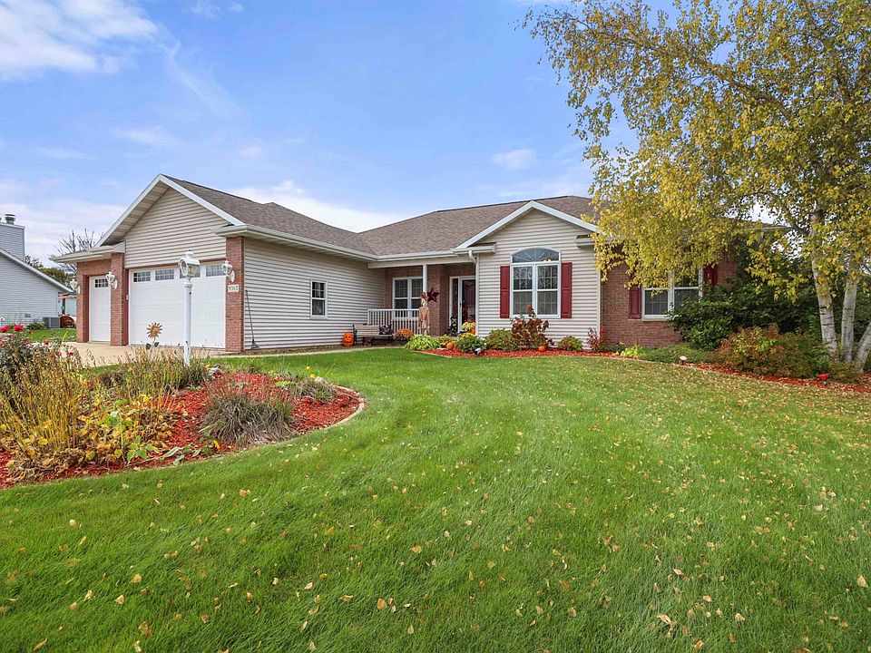 Executive Ranch on .66(+/-) on cul du sac lot w/ 3 BRs and 2 full and 2 half BAs w/2887(+/-) SF. Walk into this home and feel the ahh factor as you look through the soaring 9' living room through the wall of windows. Multi-sided gas FP wraps into gourmet kitchen. MBR w/tile surround shower & WIC. 2 more BRs as well as a ½ BA off kitchen, full BA. LR completes this floor. LL has FR, den, game room w/bar, office, ½ BA. Updates per seller: central vac, roof, covered/open air porch, garage furnace, insulated garage, garage doors & windows, security system & updated kitchen. Att 3.5 car garage.
