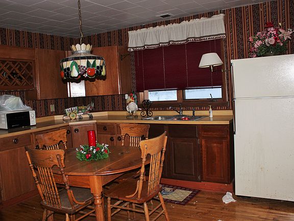 4 bedroom, 2 bath home with secluded peaceful country setting! Home features a grand covered porch. Living room/dining area has wonderful wood floors and numerous windows for natural lighting. Nice country kitchen. 1 bedroom on the main level and 3 bedrooms upstairs. One car detached garage. Barn has an open area with dirt floor as well as a work shop area. Seller is offering $1500 for roofing materials as the back side of the roof needs some attention.